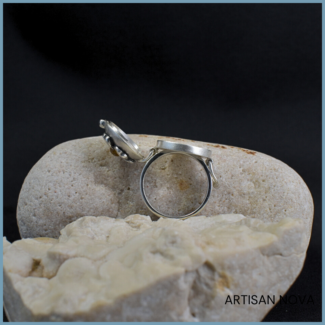 Pierścionek otwierany sekretnik ze srebra 925 bursztyn bałtycki rozmiar 15 YELLOW AMBER