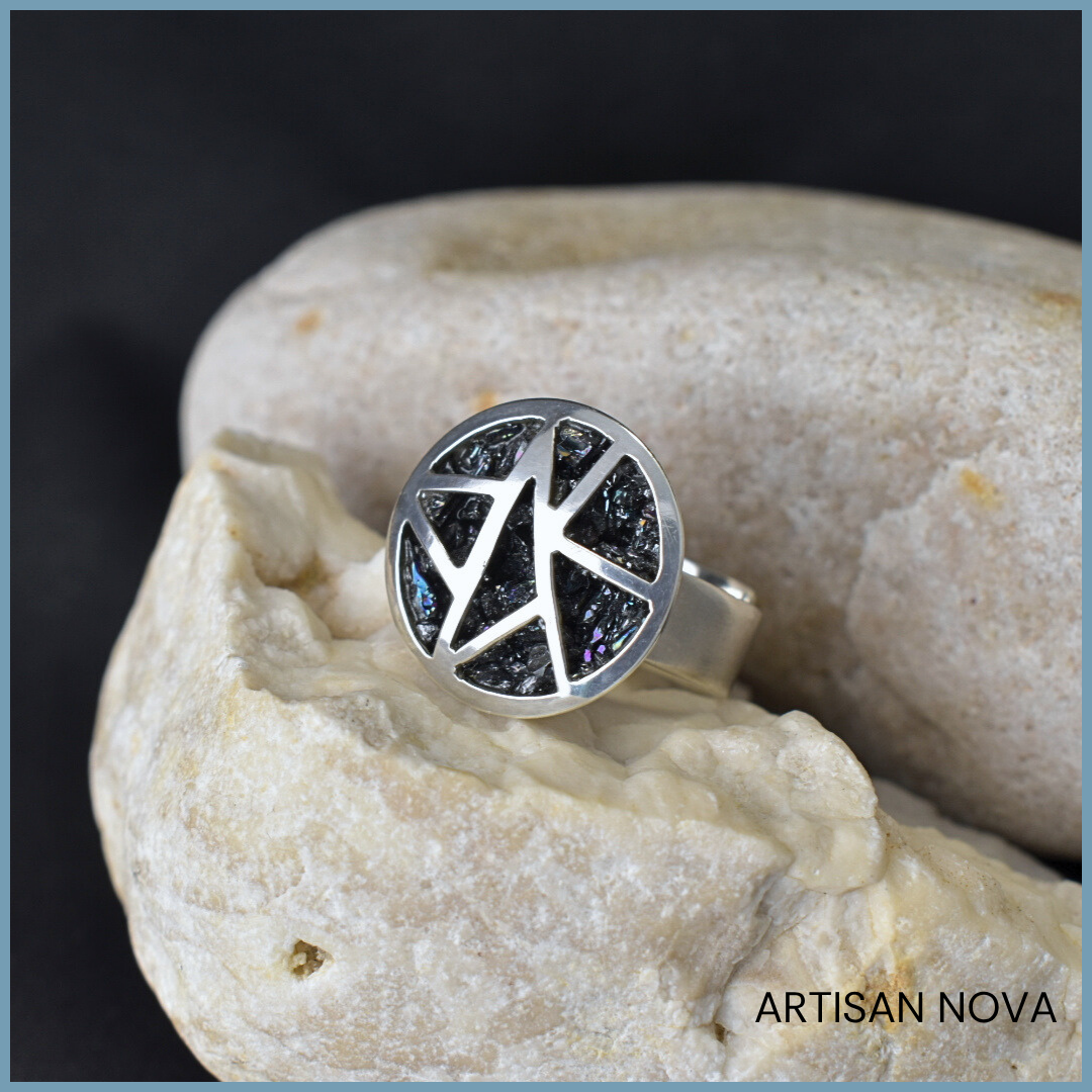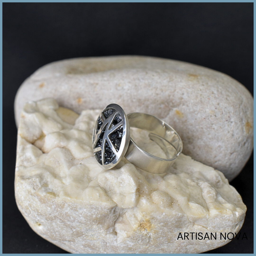 Pierścionek ze srebra 925 z karbokorundem rozmiar regulowany 14-17 BLACK CARBORUNDUM