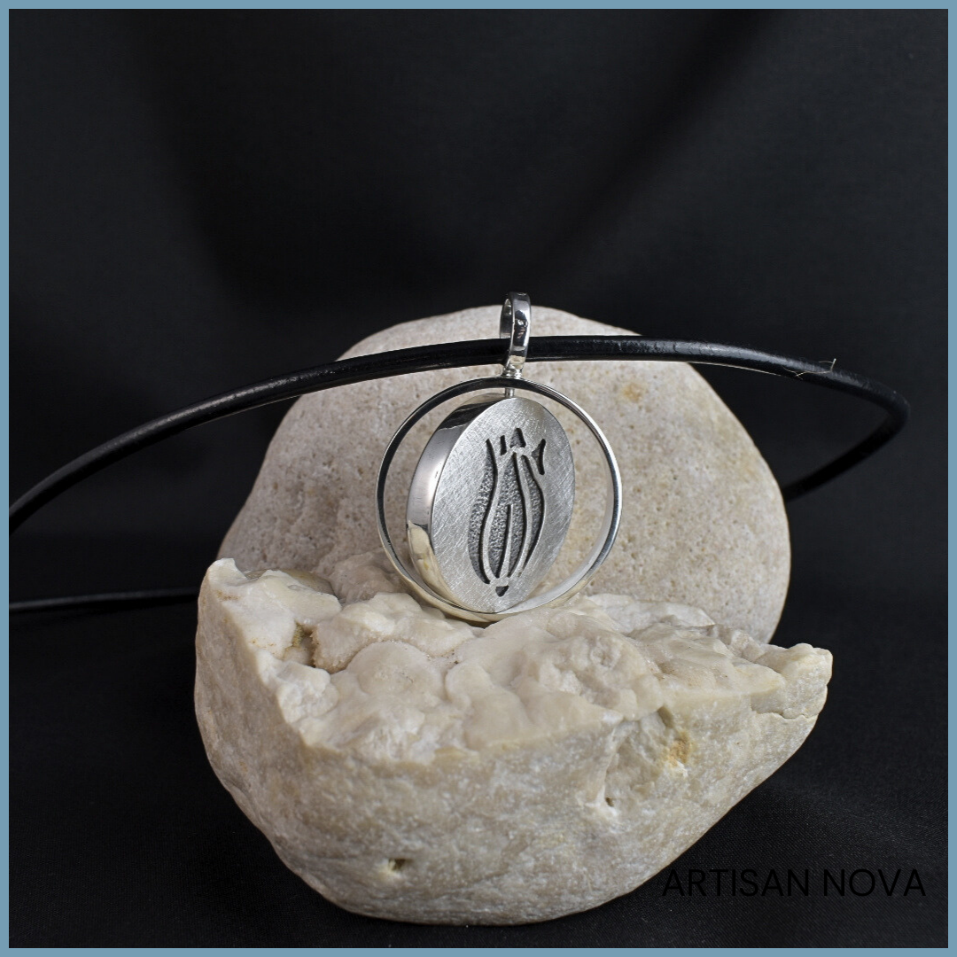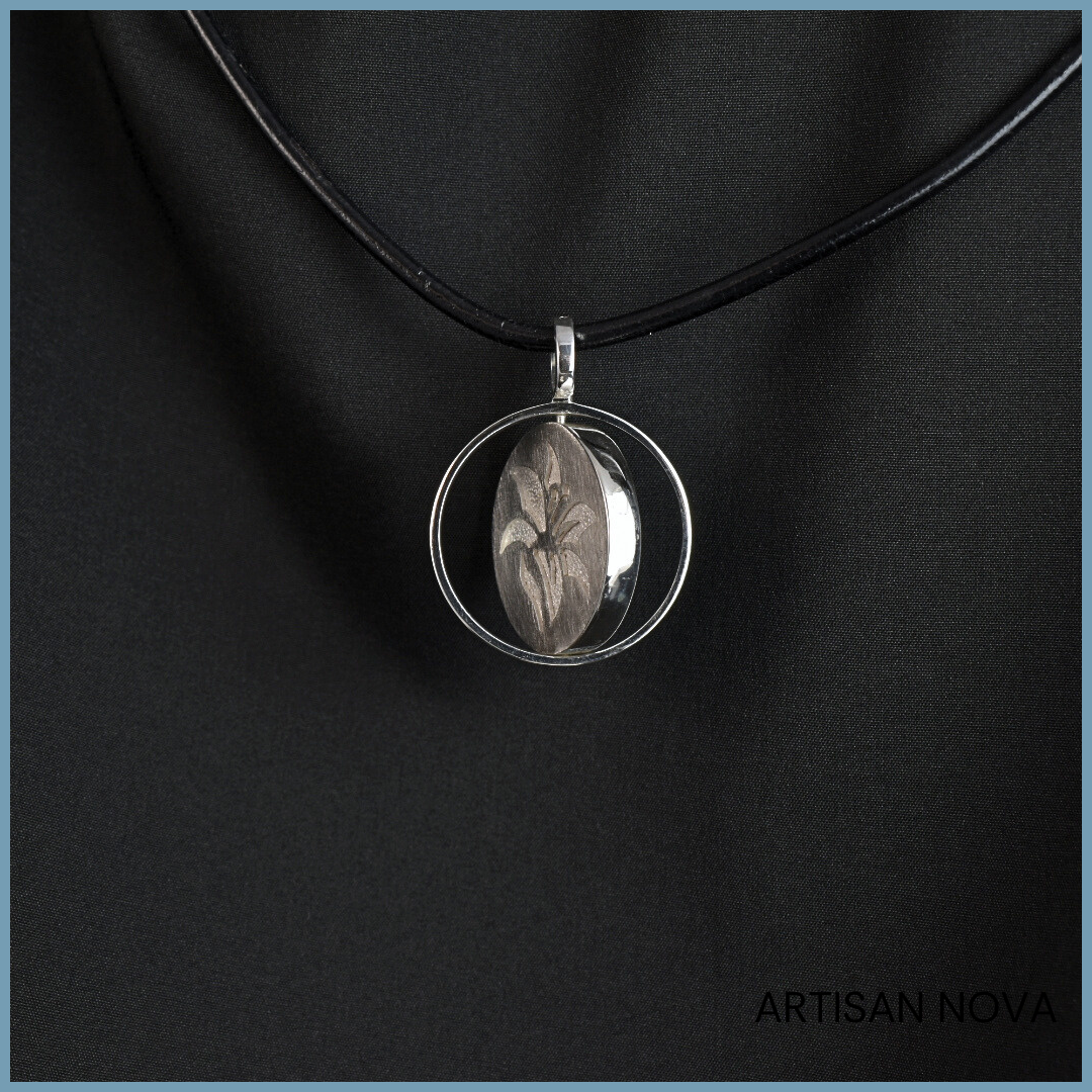 Naszyjnik srebro 925 w formie ruchomego medalionu z motywami lilii i tulipana.